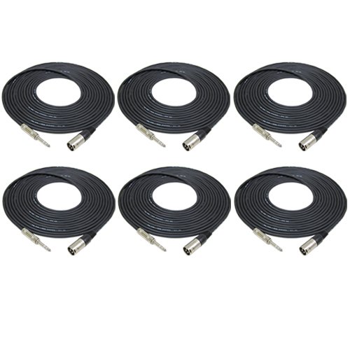 GLS Audio 25ft Patch Cable Cords - XLR Male To 1/4" TRS Black Cables - 25' Balanced Snake Cord - 6 PACK (NOTE: THIS IS NOT A MIC CABLE!) Product Description: